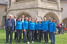 Na nedeljskih slovenskih šmarnicah pri Gospe Sveti je pel tudi Mešani pevski zbor svetega Tilna iz Besnice pod vodstvom Janeza Fabjana. / Foto: Jože Košnjek