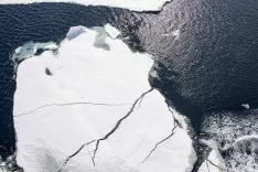 Taleče se ledene ploskve v Arktičnem oceanu. Led odbije od 50 do 70 odstotkov sončne svetlobe, morje pa le sedem, in zato se morje hitreje segreva … / Foto: Wikipedija