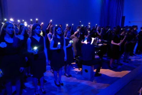 Gimnazijsko petje je osvetlilo dvorano Sokolskega doma. / Foto: arhiv Gimnazije Škofja Loka