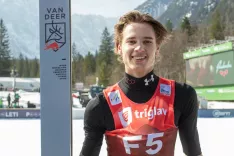 Jaka Drinovec, Strahinj (NSK Tržič FMG): »Lepo vreme, lepa atmosfera, žal en padec ... Postavil sem osebni rekord 232 m, kar je bila tudi daljava dneva. Leteti v Planici je nekaj posebnega. Na letalnici se sicer vsaka napaka bolj pozna, je pa tudi veliko več užitkov, če ti uspe dober polet. Veselim se naslednjih dni. V vlogi predskakalca sem drugo leto.« / Foto: Maša Bertoncelj