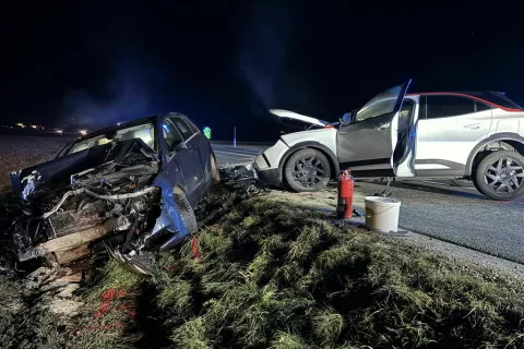 Žeje – V četrtek se je nekaj po 20. uri na cesti med Vodicami in Komendo pri naselju Žeje zgodila prometna nesreča, v kateri sta bila udeležena dva voznika osebnih vozil. Kot so pojasnili na Policijski upravi Ljubljana, je po doslej zbranih obvestilih do prometne nesreče prišlo, ker je voznik, ki je vozil v smeri Komende, zapeljal na nasprotno smerno vozišče in trčil v vozilo, ki je pripeljalo nasproti. »Pri tem sta se povzročitelj huje, udeleženec pa lažje telesno poškodovala. Z reševalnim vozilom sta bila odpeljana v Urgentni blok Kliničnega centra Ljubljana, njuno življenje pa ni ogroženo,« so navedli. Policisti nadaljujejo zbiranje obvestil zaradi suma kaznivega dejanja nevarne vožnje. O vseh ugotovitvah bo obveščeno pristojno državno tožilstvo. Na kraju nesreče so posredovali gasilci PGD Kamnik in PGD Moste, ki so protinaletno in protipožarno zavarovali kraj nesreče ter pomagali enoti NMP.