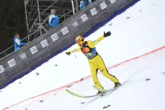 Varovanci glavnega trenerja Roberta Hrgote so na drugem mestu pristali po sicer boljših nastopih, a je Timi Zajc v tretji skupini skakalcev grdo padel pri 242,5 m.