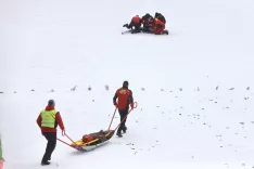Ob tem si je po informacijah Smučarske zveze Slovenije nekoliko poškodoval ramo in občutil slabost, zaradi česar ga bodo po tekmi odpeljali v jeseniško bolnišnico na podrobne preglede.