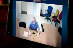 Emir Bajrektarević, ki je nastanjen v zavodu za prestajanje kazni zapora v Mariboru, je bil navzoč prek videokonference. / Foto: Tina Dokl