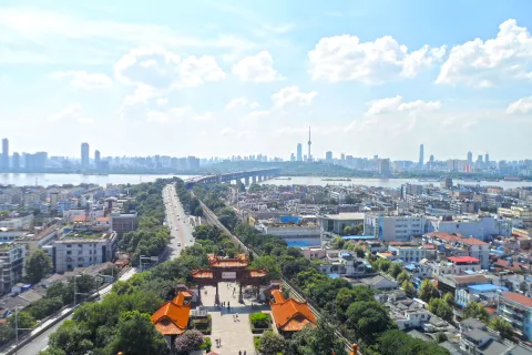 Panoramski pogled s Kačjega hriba na mesto Vuhan, skozenj teče reka Jangce, najdaljša v Aziji in tretja najdaljša na svetu. / Foto: Wikipedija