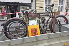 Najstarejši med razstavljenimi je bil motor iz leta 1903. V Kamnik se je pripeljal na prikolici starinskega avtobusa, medtem pa se je večina drugih jeklenih lepotcev pripeljala po cesti. Eni bolj in drugi malce manj uspešno. Med slednjimi je bil 99 let star starodobnik Lojzeta Lenčka iz Trzina, ki je zmogel vso pot, za zadnjih nekaj metrov pa mu je zmanjkalo moči, tako da so ga morali na rep razstave kar poriniti. »Priropotali smo do Kamnika, kako bomo nadaljevali, pa ne vem. Gre za francoski avto iz leta 1926, ki sem ga pred dvajsetimi leti kupil na odpadu v Franciji. Bil je v povsem razsutem stanju, vanj so se naselile kokoške. V njem sem videl potencial, predvsem pa so me pritegnila kolesa, ki so še lesena,« nam je povedal njegov pražnje in tistemu času primerno oblečen lastnik.