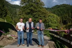 Cesto so odprli s slavnostnim rezanjem traku (z leve): Marjan Smrtnik, Mirsad Letić in župan Jezerskega Andrej Karničar. / Foto: Primož Pičulin