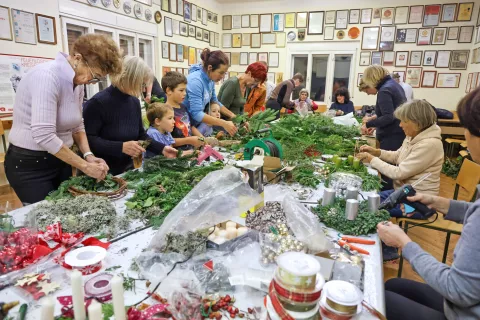 Turistično društvo Bled že vrsto let organizira delavnico izdelave adventnih venčkov, na kateri se ustvarjalnost prepleta z dobrodelnostjo. / Foto: Tina Dokl