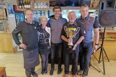 V vseh teh letih so se v Domu na Joštu zamenjali različni najemniki in vsi so bili Prijateljem Jošta naklonjeni, kot pove Boris, pa sta v njegovi »joštarski« zgodovini bila daleč najboljša v osemdesetih letih znameniti Boban in zdaj Matjaž in Tina Sedej. Tokrat so mu v domu pripravili lep sprejem, velik pokal pa mu je izročil kranjski župan Matjaž Rakovec. Počastili so ga tudi drugi pohodniki iz družbe Prijateljev Jošta, podarili so mu jubilejno majico in relief Jošta, ki ga je zanj ustvaril Boris Holy. Najbrž sem Borisu postavil odvečno vprašanje, ali bo naslednji dan tudi na Joštu. »Seveda bom tu, tako kot vsak dan.«