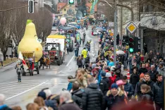 V pustni povorki je v spremstvu Tine Gaber dobil mesto tudi premier Robert Golob, ponosen, da je v Slovenijo pripeljal svobodo; v rdeči katrci so obiskovalci lahko prepoznali bivšega predsednika Boruta Pahorja, na enem izmed večjih vozov so Godlarji zaznamovali 40. obletnico zimskih olimpijskih iger v Sarajevu – tudi s spustom Jureta Franka po beli strmini. Čarovnice, na čelu s Herto, so kuhale čaj za srečo, razigrano vzdušje so s svojimi vragolijami stopnjevali klovni in mojstra iz risanke A je to, manjkali niso niti drugi risani junaki, gusarji, Barbie in Ken, odmevala je glasba iz Briljantine ... V predstavitev izbranih tem, skupno 24, je bilo vključenih okoli 250 ljudi. Če ne bi bilo deževno, bi se jim pridružila še skupina iz Vodic, je povedal predsednik Društva Godlarji Robert Vehovec, kljub izzivu, ki so ga krojili sivi oblaki, zadovoljen z izvedbo 34. pustne povorke. Kot je priznal, so bili v soboto prijetno presenečeni, saj obisk povorke pred Mercatorjevim centrom na Primskovem ni bil skoraj nič manjši kot lani, v Cerkljah po njihovi oceni celo večji, predvsem pa jih veselijo pozitivni odzivi.
