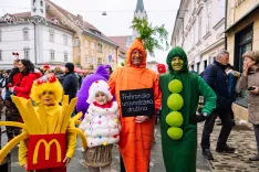 Jesenice, Šenčur, Kranj – Vse od Hrušice pa do Čufarjevega trga je v soboto potekal pustni sprevod, ki ga ob finančni podpori Občine Jesenice že četrto leto zapored organizirajo člani Kulturno-športnega društva Hrušica. Tokratni karneval je bil vse, kar so obljubljali. Bil je disko, Top Gun, Košnikova gostilna, Podarim dobim, aerobika … Vse, kar so bila ikonična osemdeseta, glavna tema letošnje povorke. V sprevodu je sodelovalo okoli trideset vozov, vsak s svojo tematiko, ter več kot tristo sodelujočih s Hrušice in okoliških vasi. Kot je pojasnil Robert Črtalič, ki je bil glavni pobudnik obuditve Hruščanskega karnevala, katerega tradicija sicer sega že v leto 1937, se za čas pusta domačini zelo povežejo, aktivno sodelujejo in pripravljajo, da je sprevod takšen, kot so si ga zamislili. »Vloženih je bilo ogromno ur prostovoljnega dela in želimo si, da bi še nadaljevali to našo pustno tradicijo. Upam si trditi, da je največji karneval,« je dejal že pred sobotnim pustnim spektaklom. Zadovoljstvo nad dogodkom je pokazal tudi jeseniški župan Peter Bohinec, ki je za čas pustnega rajanja predal županski ključ ter s tem tudi vse občinske probleme. »Upam, da boste kaj rešili,« je dejal pustnemu županu, ki pa mu je v zameno za občinsko oblast poklonil steklenico vode, ki je zadnje čase na Jesenicah večkrat primanjkuje.