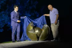 Tudi krogla z jedrom, ki so jo odkrili po slavnostni seji, delo Medvoščana, mednarodno priznanega kiparja Franceta Rotarja, prinaša števila sporočila. »Prav gotovo tudi o nujni potrebi, da neprestano rastemo, da smo povezani v različnosti in da znamo videti tisto, kar je smisel, tisto, kar v resnici je jedro,« je dejal župan. Medvoščani si jo bomo lahko predstavljali kot jedro naše občine, ki ga obdajata dve polovici, reki Sava in Sora, so ob umestitvi skulpture na sotočje pojasnili na občini. Z izbiro lokacije so obenem ustvarili opomnik na poplave in simbol skupnosti, ki jo preizkušnje le še bolj povežejo in utrdijo.