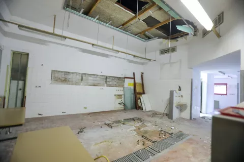 V teh dneh se bo začela prenova prostorov nekdanje šolske kuhinje v Osnovni šoli Žiri. / Foto: Tina Dokl