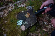 Gozd – »Veliko poudarka dajemo mikološki zgodovini, tudi umetnosti, ki je posvečena gobam in njihovemu poznavanju na terenu. O užitnih gobah kaj povemo sproti, na današnjem druženju v Gozdu pa je poudarek predvsem na prepoznavanju fluorescentnih vrst gob. Z ultravijoličnimi lučkami bomo šli v gozd in bomo zelo dobro videli, kako gobe fluorescirajo pod takšno svetlobo. Zaradi nedavnih vremenskih pogojev, ki so bili na tem območju, z zelo močnim vetrom in sušo, gob ne bo veliko, sem pa prinesla nekaj gob iz tistih koncev, kjer vetra ni bilo in si bomo v Zavetišču v Gozdu ogledali manjšo razstavo s 27 različnimi gobami,« z žarom pripoveduje determinatorka gliv in amaterska mikologinja Katarina Grabnar Apostolides, ustanoviteljica Mikološkega muzeja Slovenije, ki deluje pod okriljem Zavoda Natura Slovenika. Katarina je tudi soavtorica knjige Zadnja vijoličasta bledivka, ki ni gobarski priročnik, ampak biografija, prepletena z nekaj njenimi najljubšimi gobami in čarom mikologije.