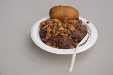 Šenčur – Da je godla med ljudmi še vedno zelo priljubljena, so znova dokazali na sobotnem Dnevu godle v Blagnetovi hiši v Šenčurju, kjer je ta posebna jed pošla v pičli uri. Člani Turističnega društva Šenčur so letos skuhali 180 litrov godle, kar je zadostovalo za približno sto porcij. Kot je pojasnila predsednica društva Katja Pipan, so osnovne sestavine preproste, a skrbno izbrane. Na svinjski masti popražena čebula, kuhana prosena kaša in ješprenj ter svinjska kri. Za piko na i poskrbijo začimbe. »Gre za avtohtono šenčursko jed, gosto in bogatega okusa, ki jo lahko primerjamo s krvavico. Tradicionalno jo postrežemo s krompirjem v oblicah,« je dejala Pipanova.