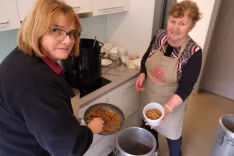 Letos so člani Turističnega društva Šenčur skuhali 180 litrov godle, ki so jo postregli na Dnevu godle. / Foto: Maša Likosar