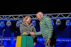 Ob uradnem odprtju Hudičeve brvi sta si v roke segla državna sekretarka na ministrstvu za naravne vire in prostor Lidija Kegljevič Zagorc ter župan Občine Škofja Loka Tine Radinja. / Foto: Primož Pičulin