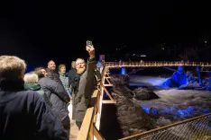 Odprtja se je udeležila državna sekretarka na ministrstvu za naravne vire in prostor Lidija Kegljevič Zagorc ter skupaj z županom uradno odprla Hudičevo brv.