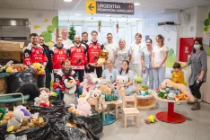 Jesenice – Pred kratkim so otroke v jeseniški bolnišnici obiskali hokejisti HDD SIJ Acroni Jesenice. Niso pa prišli sami, s seboj so namreč prinesli ogromno vreč, v katerih je bila kopica igrač. Nedavno so se na dobrodelni tekmi pomerili z italijanskim HC Merano in z rezultatom 6 : 1 dosegli prepričljivo zmago. A morda celo bolj kot po zmagi si bodo navijači dogodek zapomnili po prvem zadetku domače ekipe, ki mu je sledil t. i. teddy bear toss (metanje medvedkov), ko je na led priletelo veliko plišastih igrač. Hokejisti so jih predali Splošni bolnišnici Jesenice, in kot je povedal kapetan Gašper Glavič, je bila odločitev za dobrodelnost skupna želja kluba. »Namen dobrodelne tekme v dvorani Podmežakla je bil zagotovo zbrati čim več igrač. Zelo veliko nam pomeni, da lahko pomagamo. Vsi smo bili enkrat otroci in vemo, kako pomembne so nam bile igrače. Bil je popoln dan, poln dobrodelnosti in čustev ob končni zmagi,« je dejal in dodal, da so dober odziv pričakovali, vseeno pa se je zbralo veliko gledalcev – in skoraj vsak je imel s seboj eno igračo, nekateri celo več.