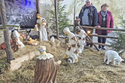 Poljane nad Škofjo Loko – Letos nasproti gostilne Na Vidmu v Poljanah stojijo zanimive jaslice. Zakonca Anton in Marjeta Kokelj z Mlake nad Lušo pa sta tista, ki sta zaslužna za to, da jemljejo dih mimoidočim in tistim, ki se v Poljane pripeljejo po naključju. »Lani je padla ideja, da bi se v Poljanah postavile jaslice, a prepozno, da bi jo udejanjili. Vse leto smo delali pri tem projektu, nakar sva z ženo jaslice dobila v Mariboru, prihajajo iz Poljske. Všeč so nama bile na prvi pogled, zato sva jih kupila in pripeljala v Poljane,« pove Anton. Kako sta našla jaslice ravno v Mariboru, ju vprašam. Marjeta pojasni, da sta nekoč v Novem mestu na kmetijskem sejmu videla ogromno skulpturo orla. »Ko smo urejali breg za domačo hišo na Mlaki, je bila na njem ogromna skala. Hoteli so jo minirati, ampak sva se odločila, da bova nanjo postavila orla.« Mogočni orel, ki mi ga pokažeta na fotografiji, ima preko kril premera dva metra. »No, in pri istem Mariborčanu sva dobila tudi jaslice,« se nasmehneta.