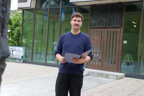 Razstavo sta pripravila Žan Škrjanec (na fotografiji) in dr. Anja Bajda, v. d. direktorice Tržiškega muzeja. / Foto: Tina Dokl