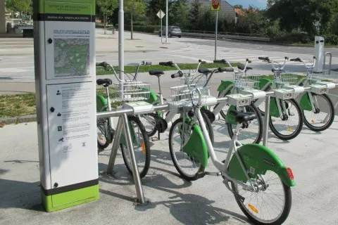 Postaja za izposojo koles pri knjižnici A. T. Linharta v Radovljici / Foto: Gorazd Kavčič, arhiv Gorenjskega glasa