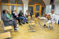 Živahno je utripalo ponekod z manj, ponekod z več udeleženci že na sobotno dopoldne, med drugim so v prostorih LU Tržič prisluhnili sprostitvenim življenjskim zgodbam ob kitari v družbi Andreja Pešca iz Žalca. »Starejši ko si, bolj spoznavaš, koliko želje še imaš po znanju. To me žene naprej, še več bi se rada naučila,« je povedala udeleženka Vida Ribnikar iz okolice Tržiča. Ne prav veliko korakov stran je bil vodja ekipe prve pomoči pri Območnem združenju Rdečega križa Tržič Miha Peternelj na voljo za prikaz pristopa k nenadno oboleli osebi, izvajanja temeljnih postopkov oživljanja z uporabo AED. Ustavili smo se še na lokaciji, ki je pritegnila najmlajše. Tržičanka Jana Oblak, profesorica biologije in gospodinjstva, jim je predstavila življenje madagaskarskega sikajočega ščurka, ptičjega pajka in polža ahatnika. »Kar pomnim, sem bila stalno med živalmi. Sploh te gomazeče živali so me zmeraj navdihovale. Bolj so bile ljudem neprivlačne, čudne, bolj so me zanimale,« je povedala. Otroci so bili navdušeni, saj so, kot so povedali, te male živalce do zdaj videli le v risankah.