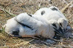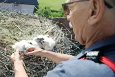 Tenetiše – Mladiče štorkelj bomo letos na Gorenjskem zasledili na osmih lokacijah, pri čemer je skupno enajst gnezd. V Škofji Loki, Vopovljah in na Mlaki, kjer so gnezda že več let zapuščena, se tudi tokrat niso razveselili mladičev, kljub temu da so zasledili pare štorkelj. Kot je pojasnil Dušan Dimnik, ki štorklje obročka že vrsto let, so po trije mladiči štorkelj v Predosljah, Preddvoru in Komendi, po dve v Žabnici, Tenetišah in na Olševku, po ena pa v Cerkljah in Lahovčah. »Mladičev je manj kot pretekla leta, ne le na Gorenjskem, po celi Sloveniji, kjer je skupno sicer 230 gnezd. Težko je oceniti razlog, a morda tiči v hladni pomladi,« je povedal in dodal: »V Cerkljah je en mladič poginil, dve jajci pa sta bili neizvaljeni. V Žabnici je bil mladič prav tako mrtev. Znano je, da v primeru, če štorklje začutijo, da ne bodo mogle priskrbeti dovolj hrane, jajca same vržejo iz gnezda.«