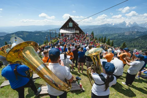 V soboto so jo pri Koči na Golici z vsem zanosom zaigrali kar dvakrat (ob tem pa še nekaj drugih skladb), ob bučnem aplavzu planincev, nekateri so se tudi zavrteli. Med njimi so bili obiskovalci od vsepovsod, tudi Simona Oštir s Polzele, ki je bila v skupini desetih sodelavcev Avto centra Kralj, ki so dobro razpoloženi prišli na sindikalni izlet prav na Golico. »Res je lepo, tudi pot je lepa in povzpeli se bomo tudi na sam vrh,« je povedala.