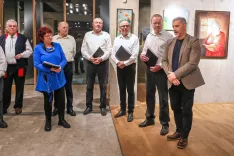 Jubilejno razstavo so v galeriji Paviljona NOB v Tržiču odprli minuli četrtek, predstavlja se 26 avtorjev. »Vedno s ponosom rečem, da so to naši slikarji, člani našega društva, in med njimi sta tudi dva, ki sta za vedno odšla med zvezde ... To sta Jože Meglič s sliko Cvetoče češnje in Alojz Štirn s sliko Vršič z okoliškimi gorami,« je dejala Globočnikova.