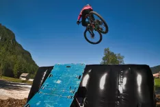 Za bolj izkušene kolesarje, ki želijo trenirati skoke, je na voljo ogromna napihljiva vreča. / Foto: arhiv parka