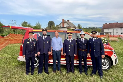 Tomaž Avguštin, predsednik PGD Reteče - Gorenja vas, je v svojem govoru poudaril, da so bili začetki društva sicer bolj skromni, se je pa vse spremenilo po izgradnji gasilskega doma, tudi kar se tiče voznega parka. »V društvo smo najprej prejeli nekaj rabljenih vozil od sosednjih društev v okviru Gasilske zveze Škofja Loka. V letu 2018 je sledila izgradnja prizidka, kamor smo takrat poleg že obstoječega orodnega vozila parkirali še vozilo GVM-1. Danes pa bomo prevzeli sodobno vozilo za prevoz moštva, ki bo poleg interventnih posredovanj operativnih članov služilo tudi za prevoz na izobraževanja in usposabljanja članic in članov ter za prevoz mladine na tekmovanja. S tem vozilom bo naše posredovanje na intervencijah tako na domačem območju kot tudi drugje še bolj varno, hitro in učinkovito.«
