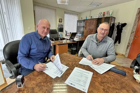 Župan Franci Kranjc je v ponedeljek z direktorjem podjetja Tigrad Valentinom Jesenkom podpisal gradbeno pogodbo za obnovo vodovodnega omrežja v Dobračevski in Prvomajski ulici. / Foto: arhiv Občine
