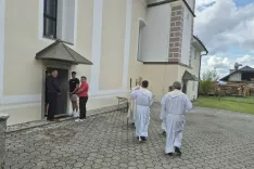 Dvorje – V podružnični cerkvi v Dvorjah so na žegnanjsko nedeljo praznovali tudi zaključek obnovitvenih del. Pred poletjem je cerkvena stavba na obrobju vasi dobila novo zunanjo podobo, na kateri so se vse bolj kazale težave z vlago oziroma plesnijo. Kot nam je povedal ključar Rajko Rozman, je bila fasada narejena v začetku devetdesetih let, ko so zamenjali tudi streho. Ljubljanski pomožni škof msgr. Franci Šuštar je tokrat pri slovesni maši ob prisotnosti cerkljanskega in velesovskega župnika Martina Lebna in Slavka Kalana poleg nove fasade blagoslovil še bandero, obnovljeno z donacijo enega izmed domačinov. Polovico sredstev za obnovo cerkve (20.000 evrov) je zagotovila Občina Cerklje v okviru sofinanciranja obnove in vzdrževanja sakralnih objektov, preostali del so prispevali vaščani in Župnija Cerklje.