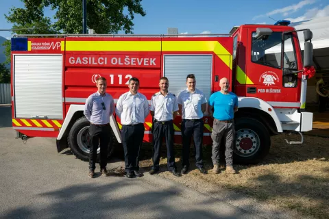 Ob tej priložnosti so olševski gasilci uradno predali namenu rabljeno gasilsko vozilo, ki so ga prejeli lani. / Foto: Primož Pičulin