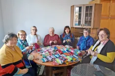 Zgornje Bitnje – Ustvarjalke Kulturno-umetniškega (KUD) društva Bitnje uživajo v ustvarjanju. Ročno pleteni in kvačkani izdelki imajo že nekaj časa globlji pomen. Izpod pridnih rok nastajajo prave umetnine, cenjeni unikati in čudoviti izdelki za dom. »Tovrstno ustvarjanje ima tudi terapevtski učinek. Ob delu se sprostimo in pomirimo, lahko pa tudi pomeni vrsto delovne terapije. Medtem ko ustvarjamo, imamo pred očmi tistega, ki bo naš izdelek uporabljal. Ker je december tudi mesec obdarovanj, smo se v ustvarjalnem krožku odločile, da bomo razveselile stanovalce – osebe z demenco v Domu upokojencev Kranj in Domu Taber Cerklje. Zanje smo spletle in nakvačkale rokavčke pomagavčke, ki pri osebah z demenco dokazano zmanjšujejo stres, stimulirajo njihove gibe, izboljšajo njihovo zaznavanje in jih sproščajo,« je povedala mentorica ustvarjalnega krožka in predsednica KUD Bitnje Mateja Arhar.