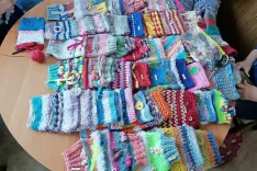 Pri ustvarjanju jim večkrat ostanejo klobčiči voln raznih debelin in barv. Sedaj so imele lepo priložnost, da so te konce vpletle in vkvačkale v rokavčke pomagavčke. »Rokavčke pomagavčke lahko izdelujemo kot kvadrat velikosti 30 krat 30 centimetrov, ki ga sešijemo skupaj. Lahko pa ga spletemo ali skvačkamo v krogu kot valj. Za izdelavo lahko uporabimo najrazličnejše materiale živih barv, kot so bombaž, volna, akril, bambus, lan, poliamid. Paziti moramo le, da je preja mehka na otip, da ne draži kože in ne 'pika'. Ustvarile smo najrazličnejše vzorce: reliefne, luknjičaste, s kitami in bunkicami. Dodale smo perlice, rožice, gumbe, trakove; paziti moramo, da so ti elementi zares dobro pritrjeni ali prišiti. Iz svojih 'zalog' smo porabile material, ki ga morda sploh nikoli ne bi, izdelek pa bo služil dobremu namenu,« je dodala mentorica ustvarjalnega krožka Tatjana Muraja Oblak.