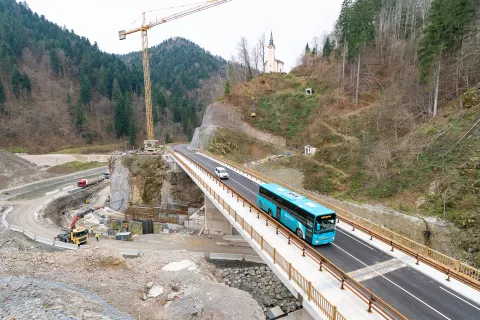 Danes je stekel promet po novi cesti čez načrtovani zadrževalnik pod Sušo. / Foto: Simon Benedičič