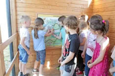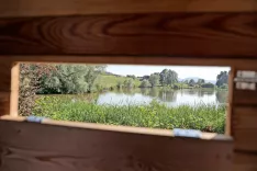 V leseni opazovalnici so na ogled fotografije ptic Toneta Trebarja, ornitologa in fotografa, postavljena pa je tudi izobraževalna tabla Pomagajmo žabici najti pravo pot. Koncept in vsebina sta delo Nike Hrabar iz Zavoda RS za varstvo narave, z ilustracijami pa jo je opremila Ines Zgonc iz Zavoda Terra Rossa. Na njej je prikazana selitvena pot dvoživk. Obiskovalci žabico primejo in jo peljejo na pot, zraven pa izvedo marsikaj zanimivega o njenem življenju.