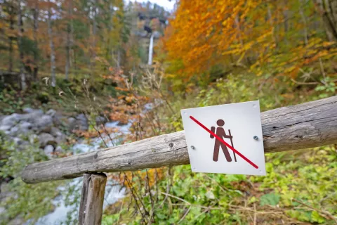 Pot okoli slapu Peričnik ostaja zaprta, opozarja TNP. / Foto: Nik Bertoncelj