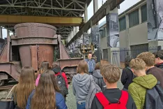 Kustosi Gornjesavskega muzeja Jesenice so dijake popeljali po kompleksu Stare Save in jim prestavili pomen železarske dediščine ter njen vpliv na razvoj mesta in identiteto lokalnega okolja. / Foto: Marjana Ahačič