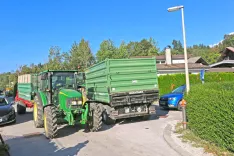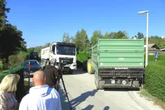 Ko se na ozki in zelo prometni cesti v Hribu srečata traktor in tovornjak, se ves promet ustavi. Prebivalcem je zato pošlo vse potrpljenje. / Foto: Alenka Brun