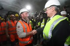 Hrušica – »Danes je poseben dan, dan za veselje, ko lahko s ponosom govorimo o premagovanju ovir, kakršna je tudi gorska veriga Karavanke.« S temi besedami je predsednik vlade Robert Golob pospremil včerajšnji simbolični preboj druge cevi predora Karavanke. Ob prisotnosti koroškega deželnega glavarja Petra Kaiserja, ministrice za infrastrukturo Alenke Bratušek, predsednika uprave Darsa Davida Skornška in drugih so slovesno zaznamovali konec podzemnega dela izkopa tudi na slovenski strani. Na državni meji z Avstrijo je delavec izvajalca Cengiz simbolično prebil še zadnje centimetre, ki so ločevali slovenski in avstrijski del vzhodne predorske cevi, zatem pa je sledilo prisrčno srečanje s prijatelji z avstrijske strani. Slovesnost ob vhodu v predor, ki jo je povezovala Bernarda Žarn, je zatem popestril Ansambel Saša Avsenika.