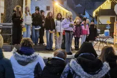 O običajih v Podkorenu so pripovedovali in tudi zapeli učenci Osnovne šole Josipa Vandota Kranjska Gora. / Foto: Suzana P. Kovačič