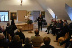 Podbrezje – V organizaciji Kulturnega društva Tabor so že štirinajstič brali poezijo Franceta Prešerna in jo okvirili z besedo o Rudolfu Maistru, ki mu je posvečeno letošnje leto in mu je pesniško pero teklo po Prešernovem vzoru. Le da so letos na minulo nedeljo tradicionalno lokacijo Pod lipo na Taboru zaradi slabega vremena prestavili v Pirčev dom. Zbrani so bili ob novi Prešernovi sliki in z nepogrešljivim Jernejem Jegličem v vlogi Prešerna. Prava kulisa, da je zazvenela Zdravljica. Predsednik domačega cerkvenega mešanega pevskega zbora Janko Jeglič je zbral nekaj odličnih glasov. »Prešeren ni pesnil kar tako, ampak iz nuje – in bi rad, da bi njegove pesmi brali in vzljubili vsi mi, vseh starosti, znanj, poklicev in stanov, da bi našemu življenju njegove pesmi dodale melodijo, dobro misel, barvo in obliko,« je zbrane nagovorila predsednica društva Dragica Perne. Program za dogodek je pripravil Milan Debeljak, ki ga je ga tudi povezoval v celoto s 16 bralci. Kot je razložil: »Odkar poteka Prešeren dan v Podbrezjah, smo se strogo držali Prešerna in smo recitirali samo njegove pesmi. Pred nekaj leti pa smo se odločili, da pokukamo še k drugim slovenskim pesnikom in okusimo tudi njihovo bogastvo. Da ne bi zajemali iz prevelikega lonca, ko vemo, da je že Prešeren sam brezmejno bogat, smo za vsako naslednje leto določili neko smer. Letos, v letu generala Rudolfa Maistra, pa smo Prešernovim pesmim pridružili tudi nekaj njegovih.«