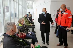 V Festivalni dvorani na Bledu so včeraj pripravili množično cepljenje proti covidu-19 za občane občin Bled in Gorje, starejše od petdeset let, ki so se prijavili na cepljenje. Ob tej priložnosti jih je obiskal tudi minister za zdravje Janez Poklukar, ki se je zahvalil lokalni skupnosti, da je pripravljena stopiti do vsakega občana, da jim pomaga pri odločitvi glede cepljenja in tudi organizira vse potrebno za uspešno in varno cepljenje, saj je največje breme tega ravno na ramenih lokalnih skupnosti. »Ni dvoma, da gre občinam, ki se tega zavedajo, bolje. Tistim, ki tega koraka še ni uspelo narediti, pa jim bomo v prihodnjih dneh pomagali, kajti ključno je, da se precepimo,« je poudaril in dodal, da bo od vseh nas odvisno, kako bomo vstopili v poletje in premagali to krizo oziroma boj z virusom. Množično cepljenje na Bledu, v okviru katerega so samo v enem dnevu cepili okrog osemsto ljudi oziroma 7,5 odstotka občanov Gorij in Bleda, je zato označil za dogodek, ki »v našo družbo vrača zdravje in širino življenja v vseh pomenih«. Poudaril je še, da bi bili ob takem tempu cepljenja v desetih dneh sposobni precepiti vse občane omenjenih dveh občin, zato se bodo potrudili, da bodo zagotovili tudi dovolj cepiva. Direktor Zdravstvenega doma Bled Leopold Zonik je ob tem postregel s podatkom Nacionalnega inštituta za javno zdravje, da so že v preteklem obdobju v njihovem zdravstvenem domu cepili sto odstotkov več ljudi, kot je slovensko povprečje. »Danes pa računam, da bomo te rezultate še presegli,« je bil zadovoljen po včerajšnjem cepljenju v Festivalni dvorani, pri katerem so jim na pomoč priskočili tudi Civilna zaščita in Slovenska vojska ter številni prostovoljci. »Zdaj bomo lahko začeli na cepljenje naročati tudi posameznike pod petdesetim letom starosti, med katerimi jih je za cepljenje prijavljenih več kot tisoč. Še ena taka akcija, pa bo Bled resnično pripravljen na sprejem gostov, ki jih že težko čakamo,« je še dodal Zonik.