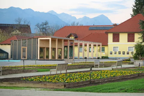 Novi stekleno-leseni prireditveni paviljon ob pristavi v Arboretumu Volčji Potok / Foto: Alenka Brun