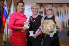 Z leve predsednica Zbornice – Zveze Monika Ažman, prejemnica priznanja Angele Boškin za življenjsko delo Darinka Klemenc in ministrica za zdravje dr. Valentina Prevolnik Rupel / Foto: Tina Dokl