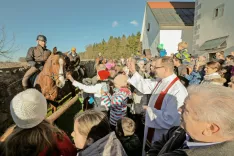 V Hrašah so konjenikom in obiskovalcem podarili blagoslovljeno sol. / Foto: Tina Dokl / Foto: