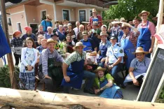 Bodoča zakonca Roblek je zjutraj na nevestinem domu, kamor je ženin prišel ponjo, po običaju najprej pričakala šranga, ki so jo pripravili bližnji sosedje in prijatelji. Sodelovalo jih je kar okoli petdeset. Bili so v primerni kmečki opravi: moški z modrimi predpasniki, ženske z značilnimi »fertahi«, s seboj so imeli staro kmečko orodje.